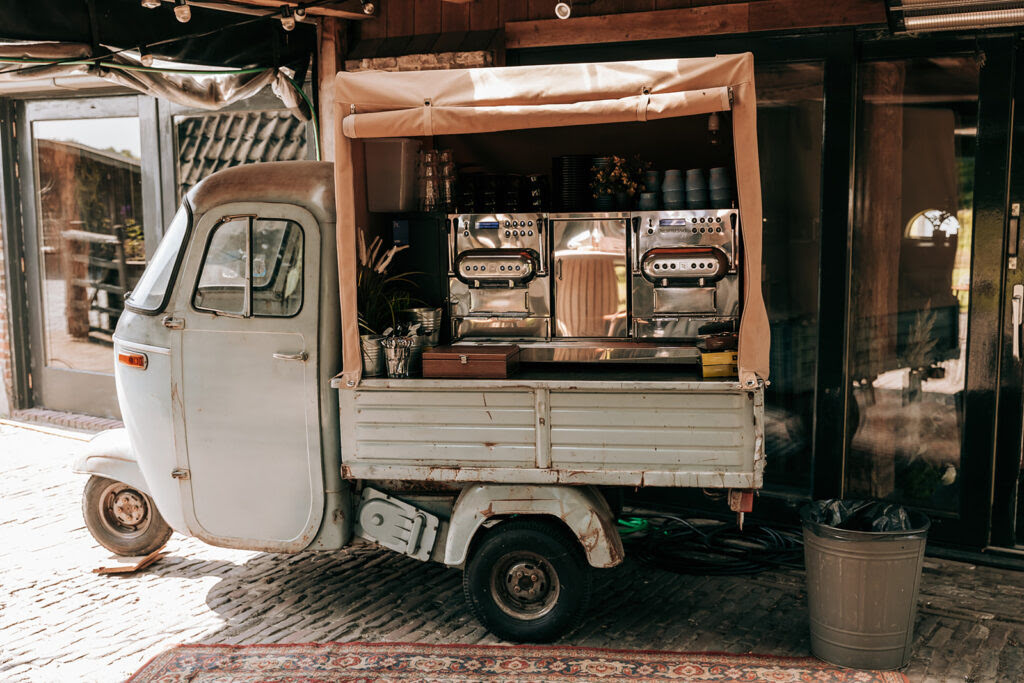 De Piaggio Ape P501, een originele eyecatcher uit 1970, omgebouwd tot mobiele koffiebar, is de perfecte toevoeging aan elk evenement waar koffie en thee gewenst zijn. Bediend vanuit een Nespresso Aquila 420, bieden we een verscheidenheid aan warme dranken aan, geserveerd in milieuvriendelijke disposable bekers. Deze charmante kleine driewieler voegt een uniek element toe aan je evenement, perfect voor de koffieliefhebbers onder ons.
