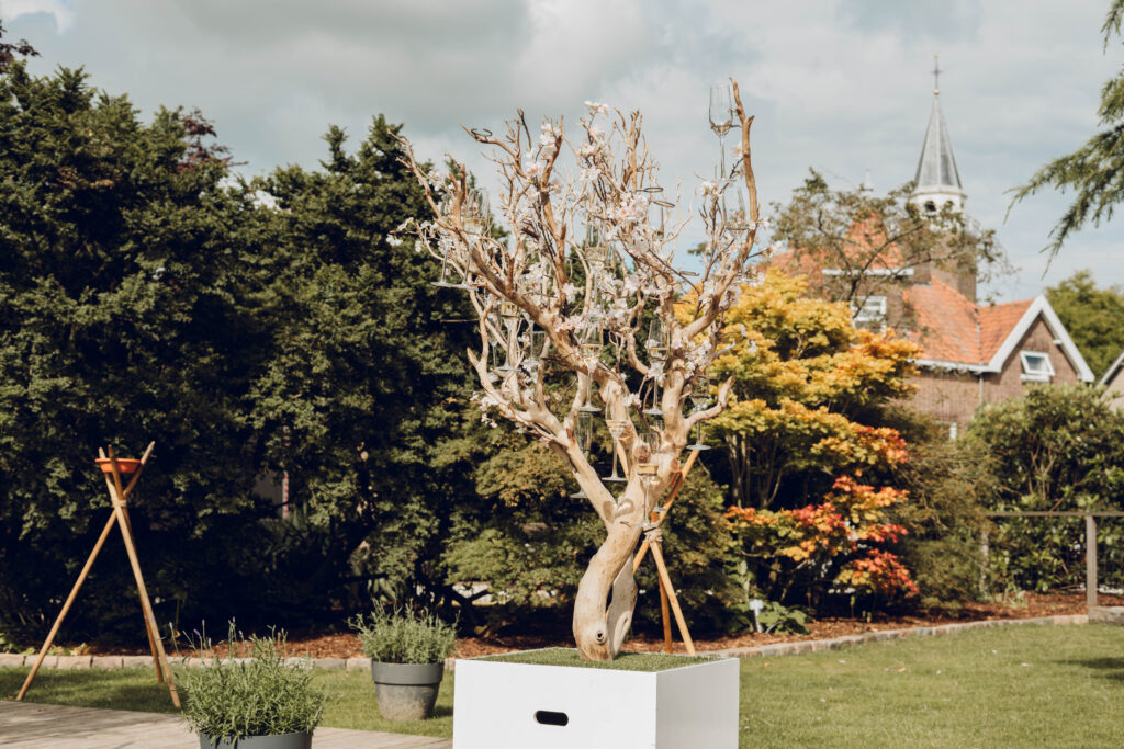 Onze champagneboom is de ultieme manier om je gasten in stijl te verwelkomen. Deze unieke creatie, gemaakt van een gezandstraalde boom en geplaatst in een strak witte bak, is niet alleen een visueel spektakel maar ook bijzonder praktisch. Het dient als een zelfbedieningspunt voor drankjes, waardoor obers meer tijd hebben om persoonlijke zorg aan je gasten te besteden. Verlicht van onderaf, creëert het een betoverende sfeer vanaf het moment dat je gasten arriveren.