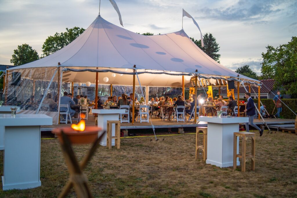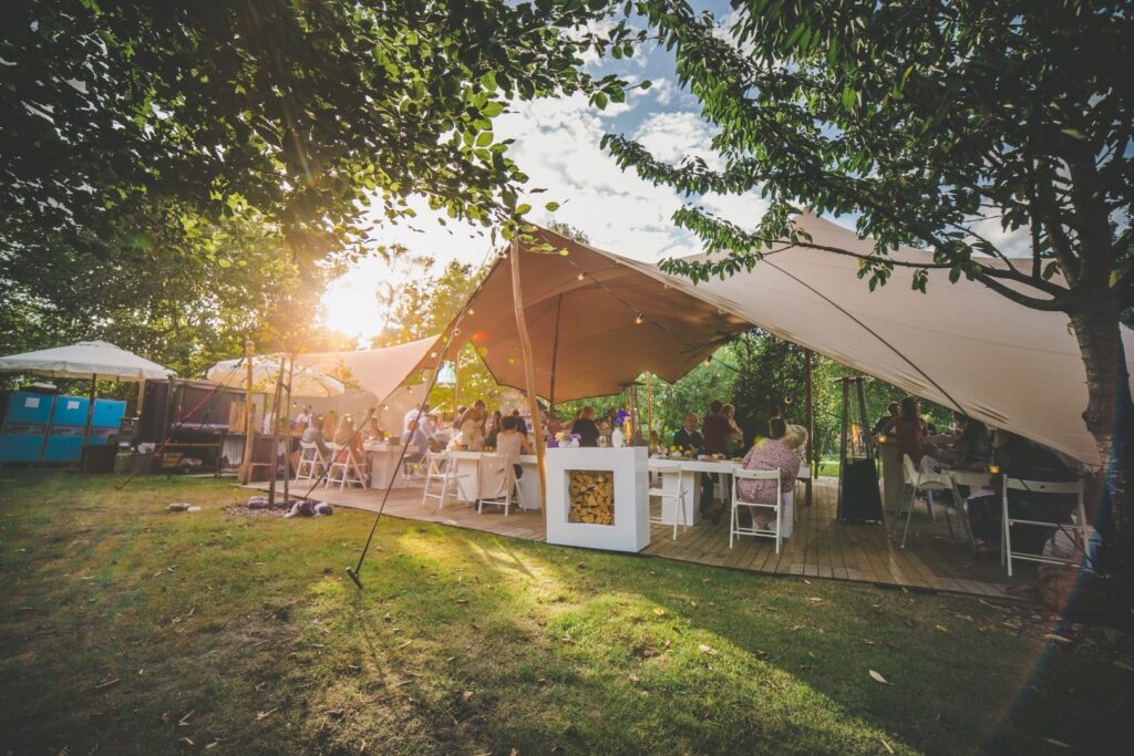 Dan is een stretchtent jouw match made in heaven! Stel je voor: een zwoele zomeravond, de ondergaande zon schijnt door de bladeren, en jouw gasten genieten van een intieme sfeer onder een elegant, natuurlijk ogend dak. Onze stretchtenten zijn flexibel, passen zich aan elke omgeving aan en beschermen tegen de elementen (zelfs tegen een beetje Hollandse regen!). Door het open karakter is er veel contact met de omgeving, wat zorgt voor een natuurlijke en ontspannen sfeer. Bovendien zijn stretchtenten vaak een voordeligere optie, terwijl ze nog steeds heel elegant en sfeervol zijn.